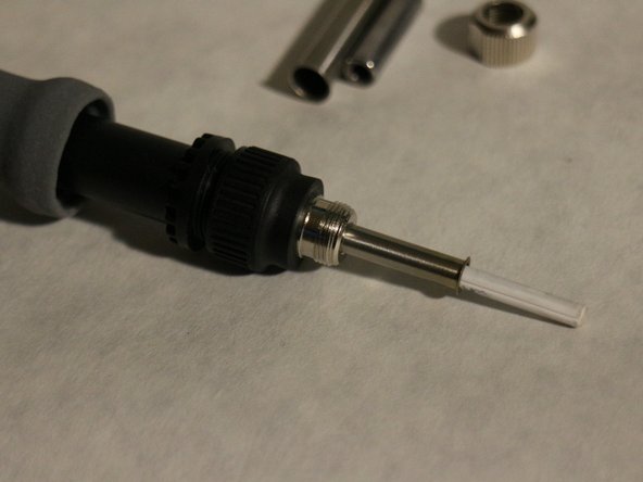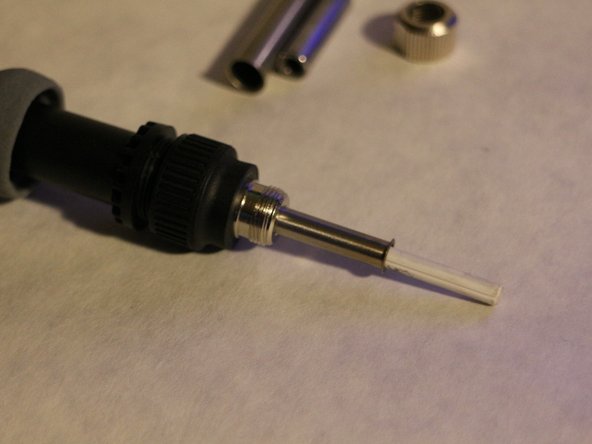 - نوک نگهدارنده را باز و برداشته، خود نوک به آسانی خارج میشود تا عنصر گرمایی سرامیکی در زیر آن دیده شود.