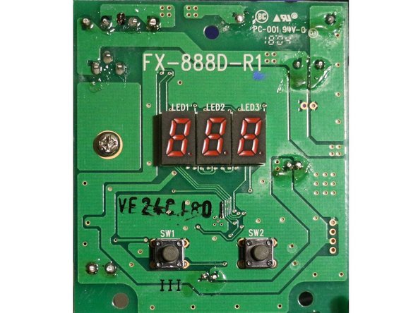 - جلوی PCB دارای نمایشگر ۳ رقمی و دو دکمه سوئیچ است. این قطعه دارای ولتاژ ۲۶ ولت Ac است که PCB باید آن را به ولتاژهای DC قابل مصرف با IC و نمایشگر تبدیل آن.